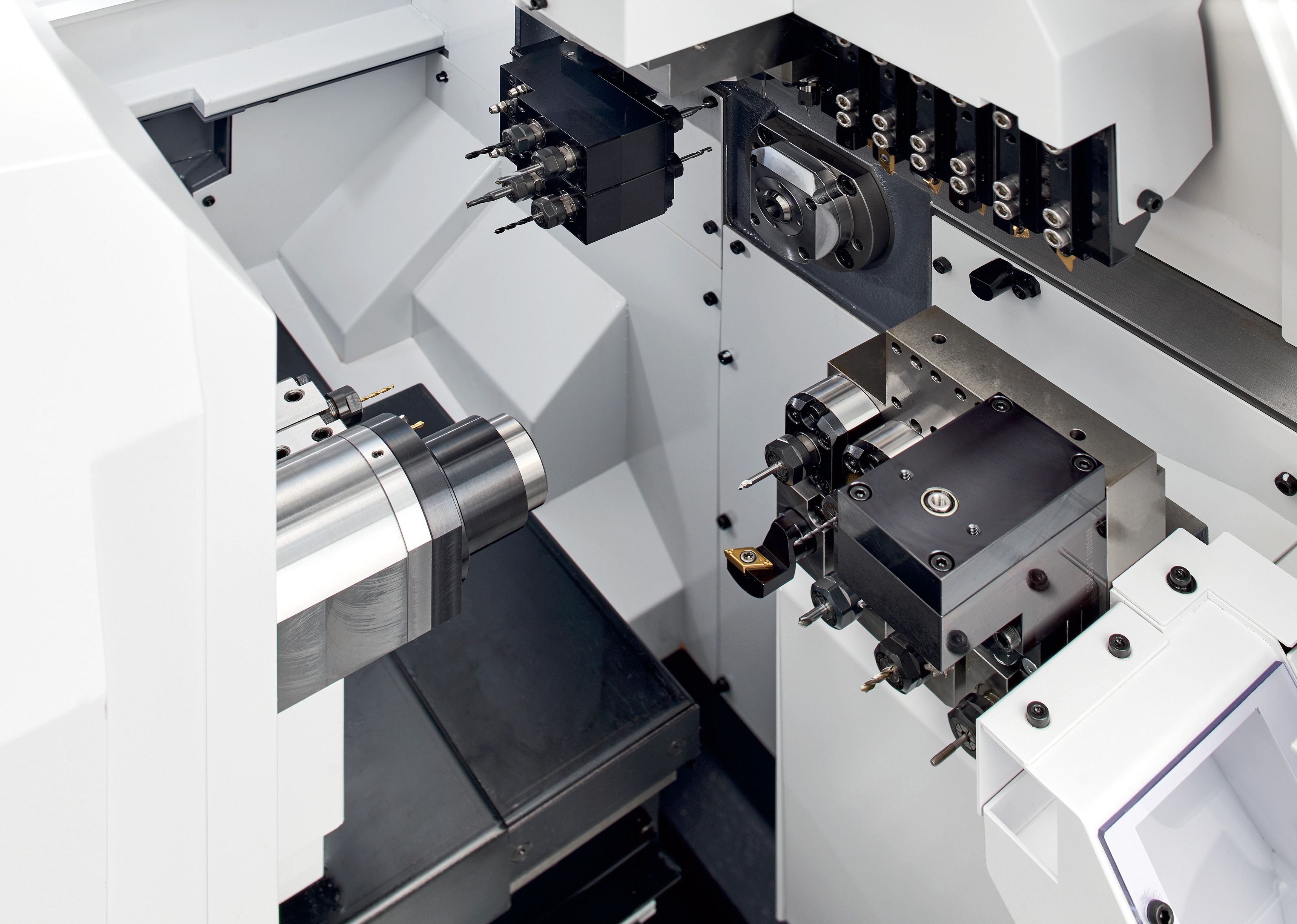 Modular tooling system on the gang and back tool posts allow a wider variety of tooling layouts.